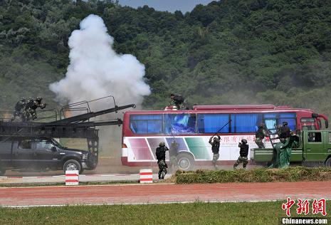 亞運執(zhí)勤武警舉行反劫持演練
